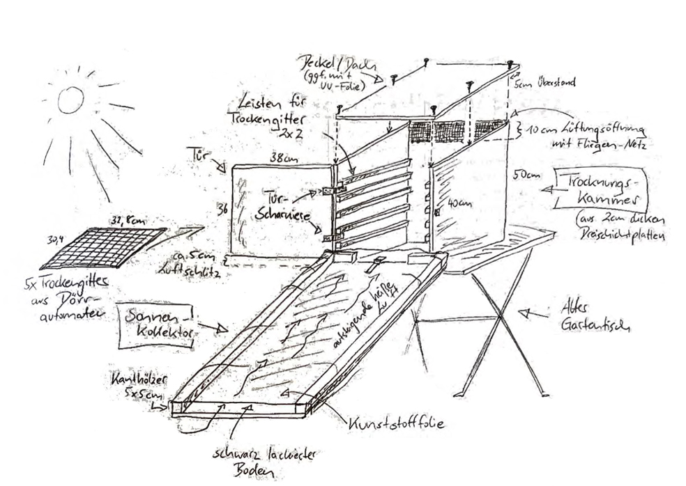 Wie das funktioniert und wie man einen funktionstüchtigen Upcycling-Solartrockner zusammenbaut erfahrt ihr im Beitrag der BBZ Garten (zum Download)